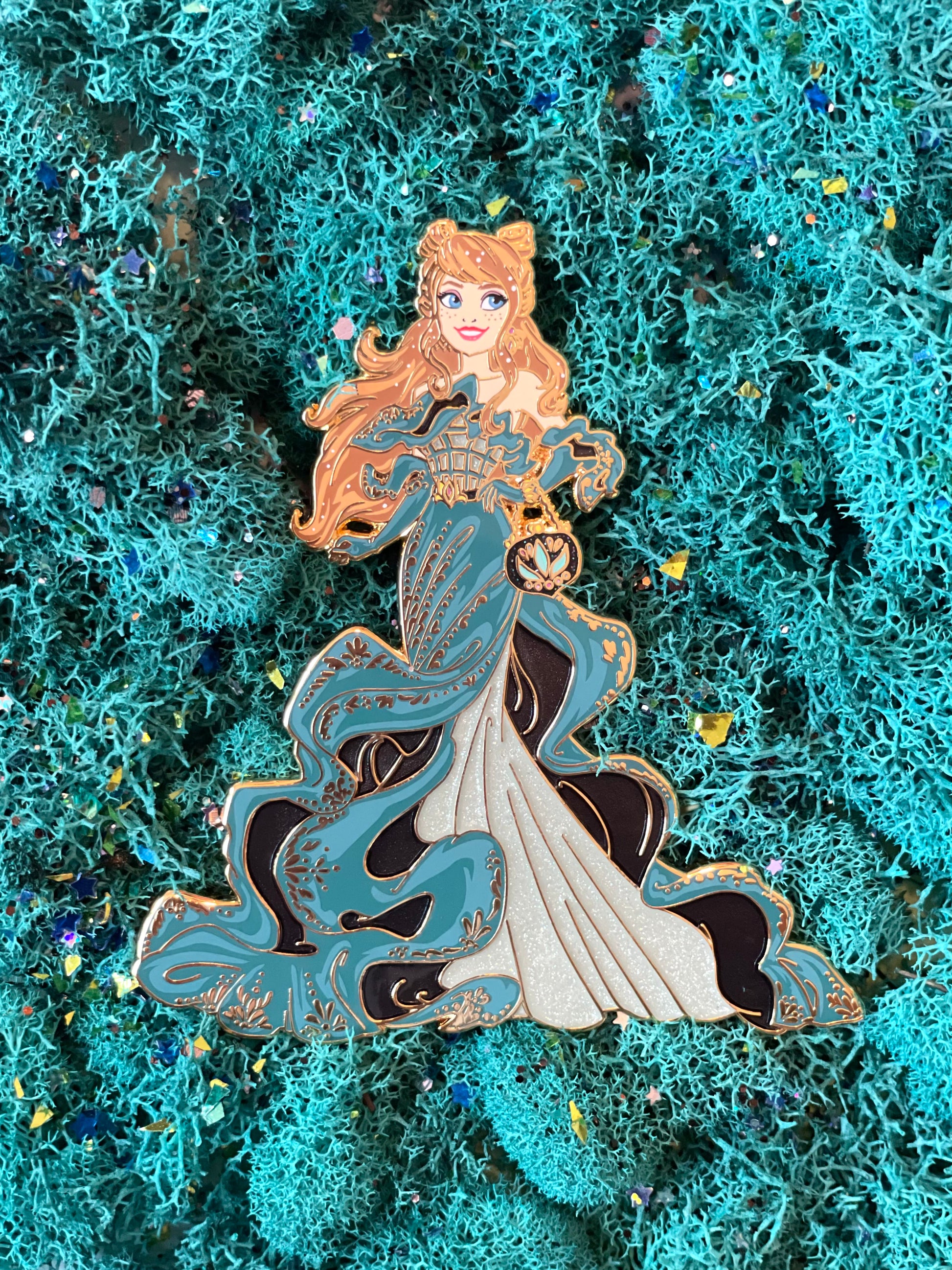 Pearlescent underskirt and corset squares, sandblast skirt waves, and glitter purse