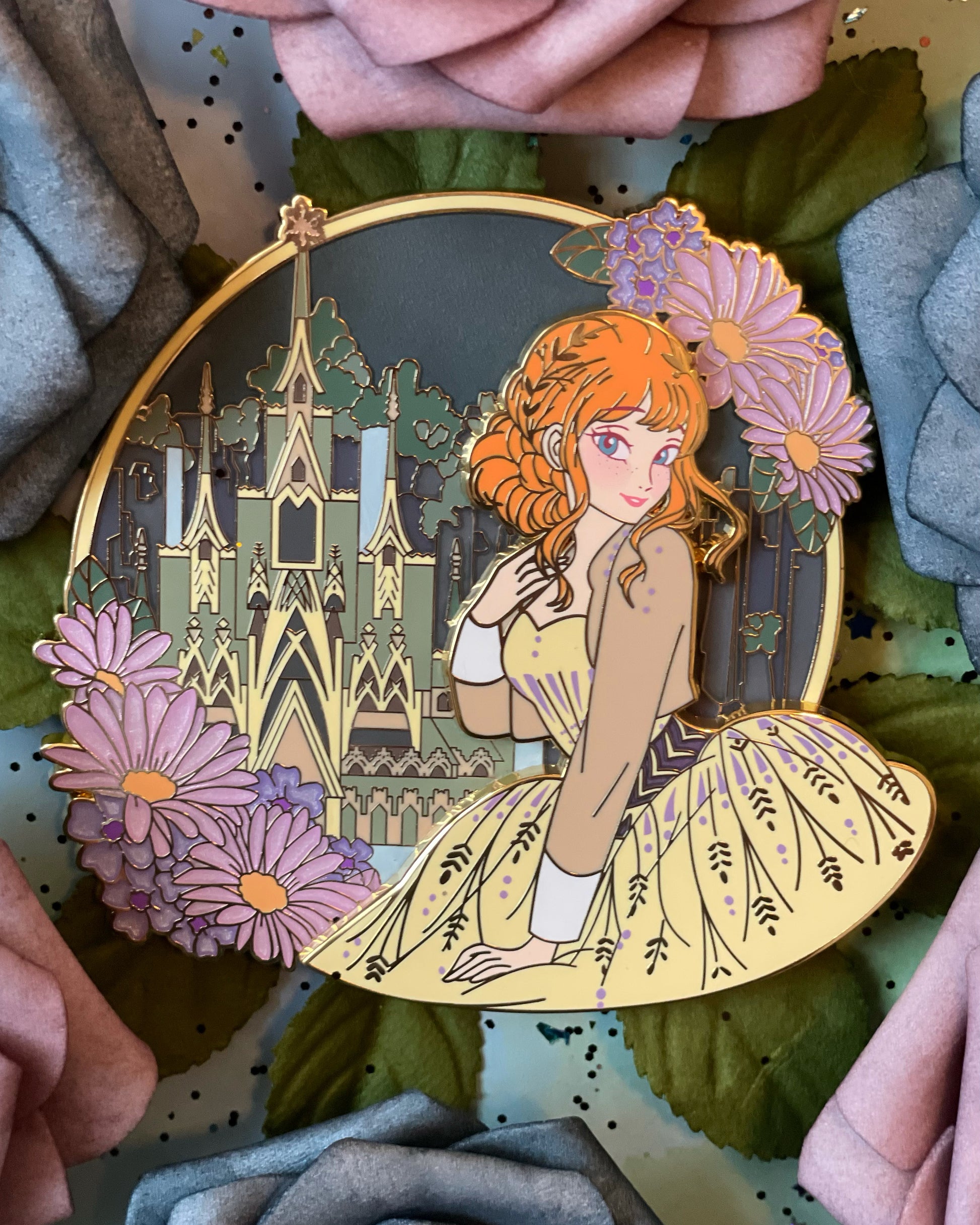Background is transparent sandblast, flowers are pearlescent, and Anna has sandblast waist sash.