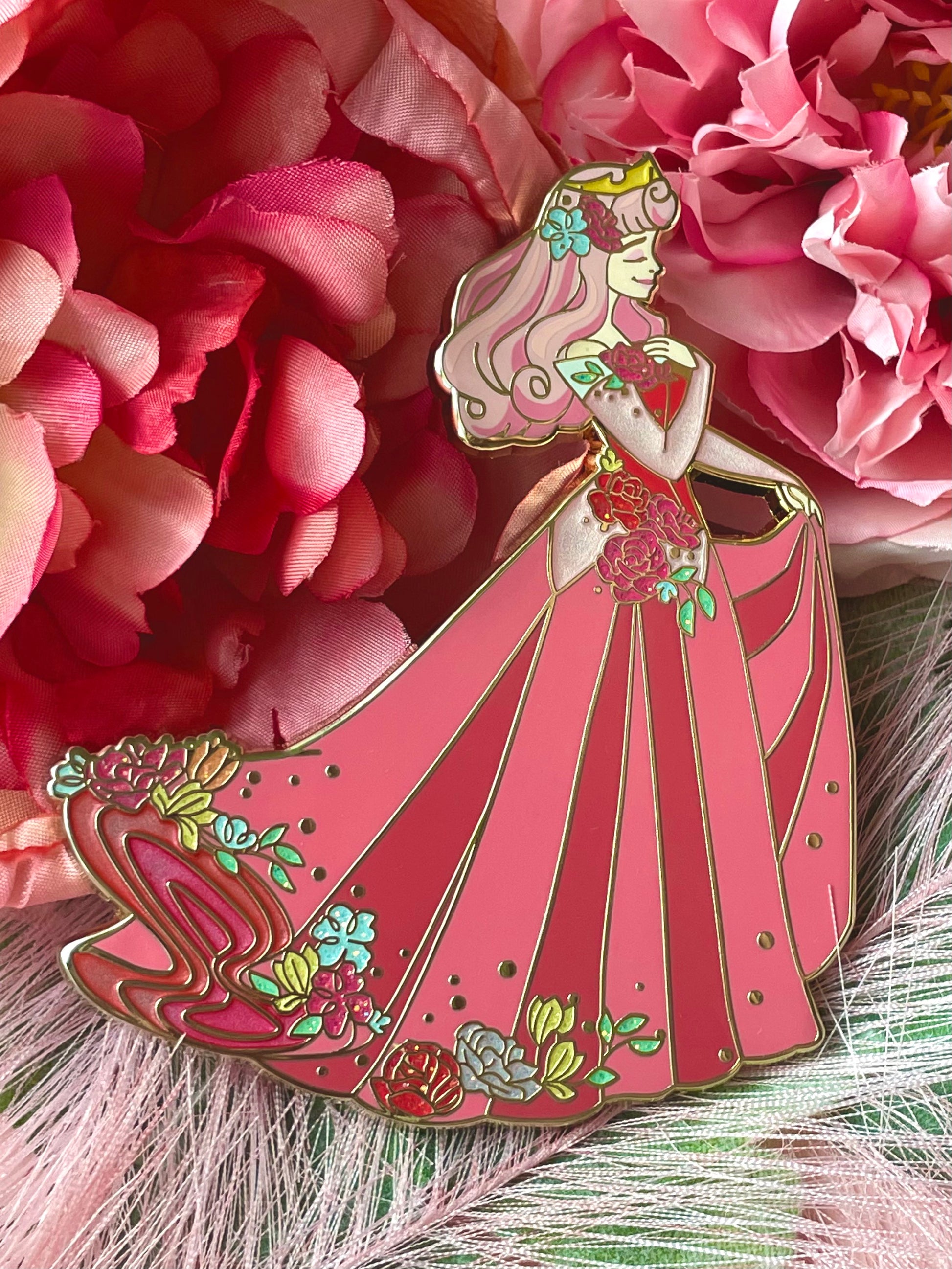 4" pin with pearlescent underskirt, sleeves and waist; all flowers are glitter