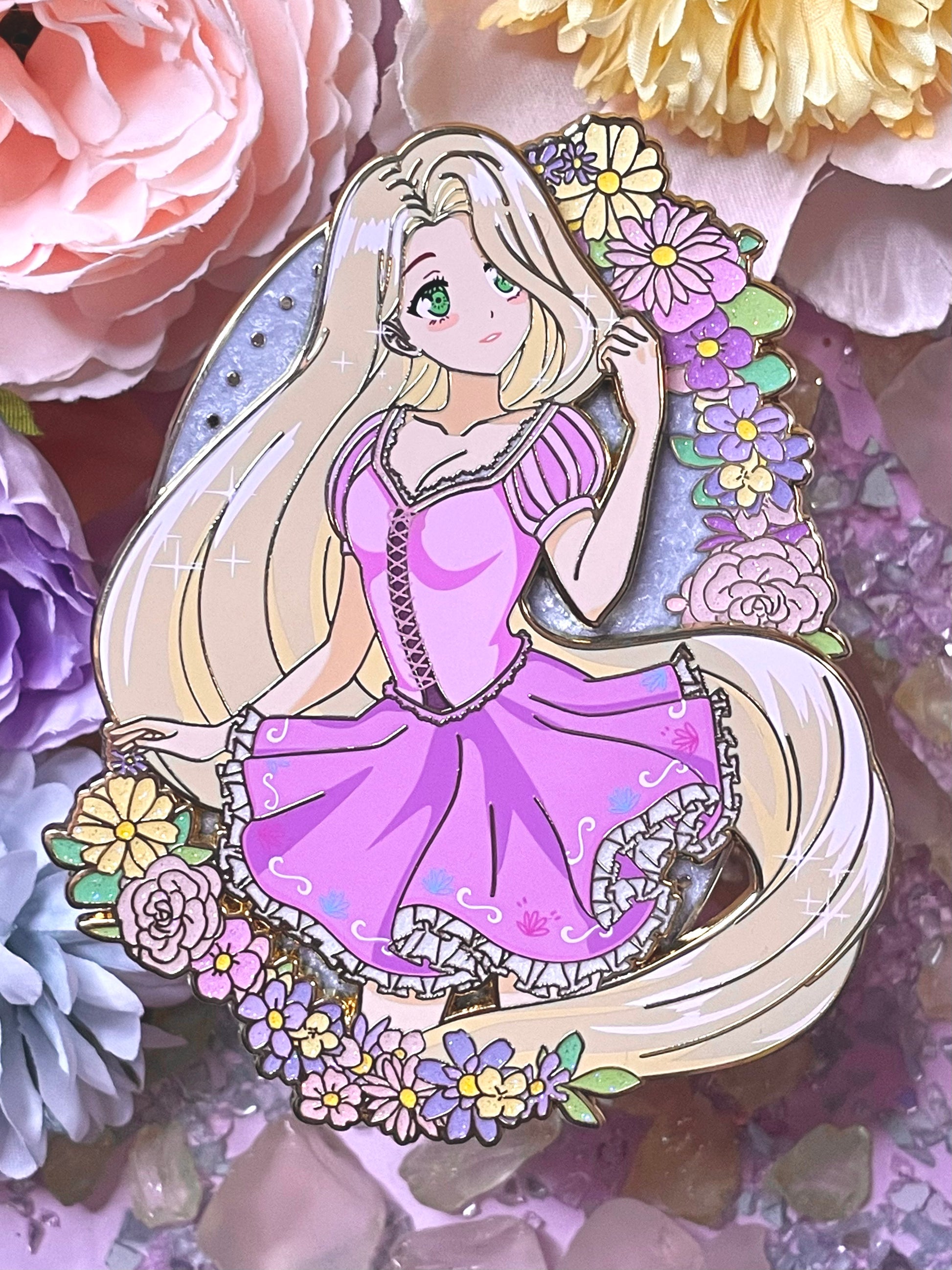 Background is pearl swirl, all flowers are glitter, and dress has pearlescent underskirt