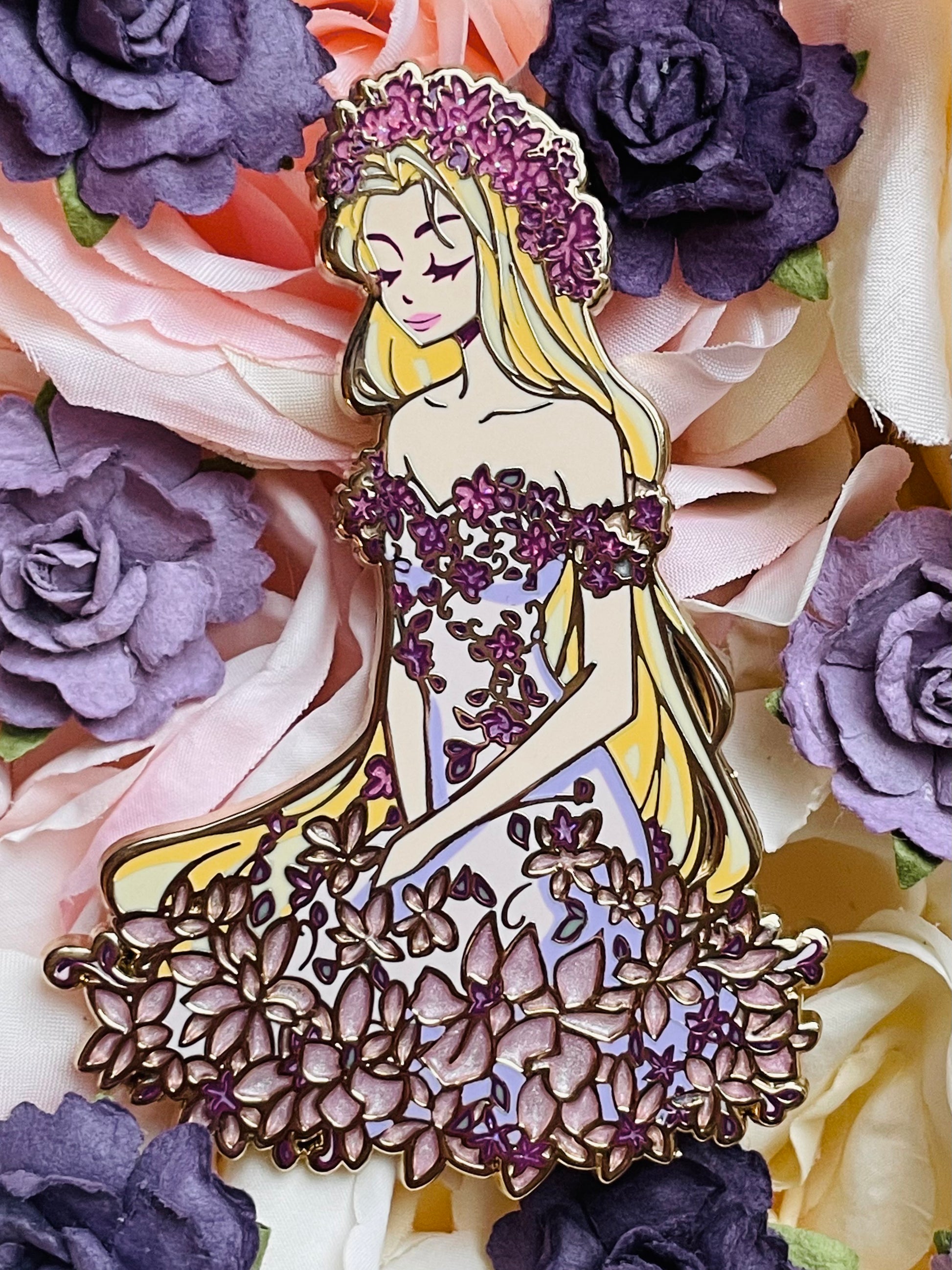 Dress shoulders and pink flowers are pearlescent, while purple flowers are glitter.