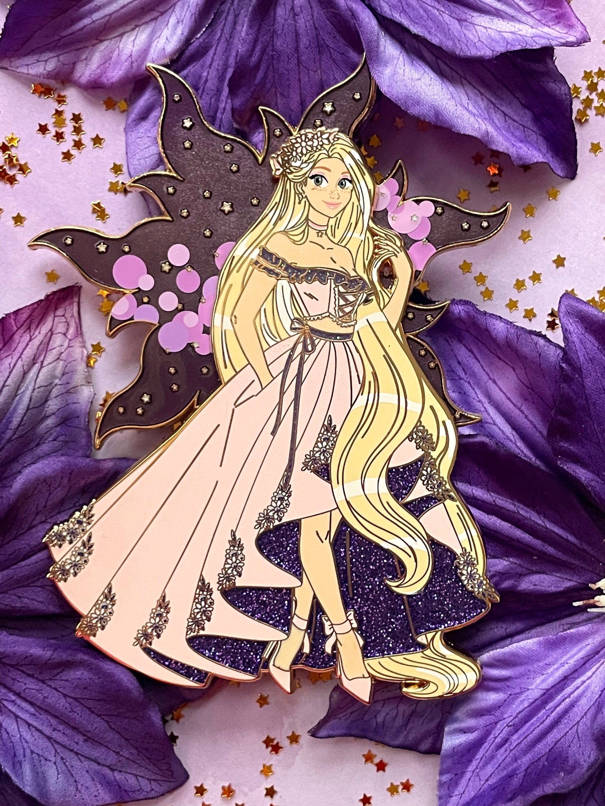Punz has a glitter underskirt, screenprinted details, a glitter hair ornament, and pearlescent skirt flowers.