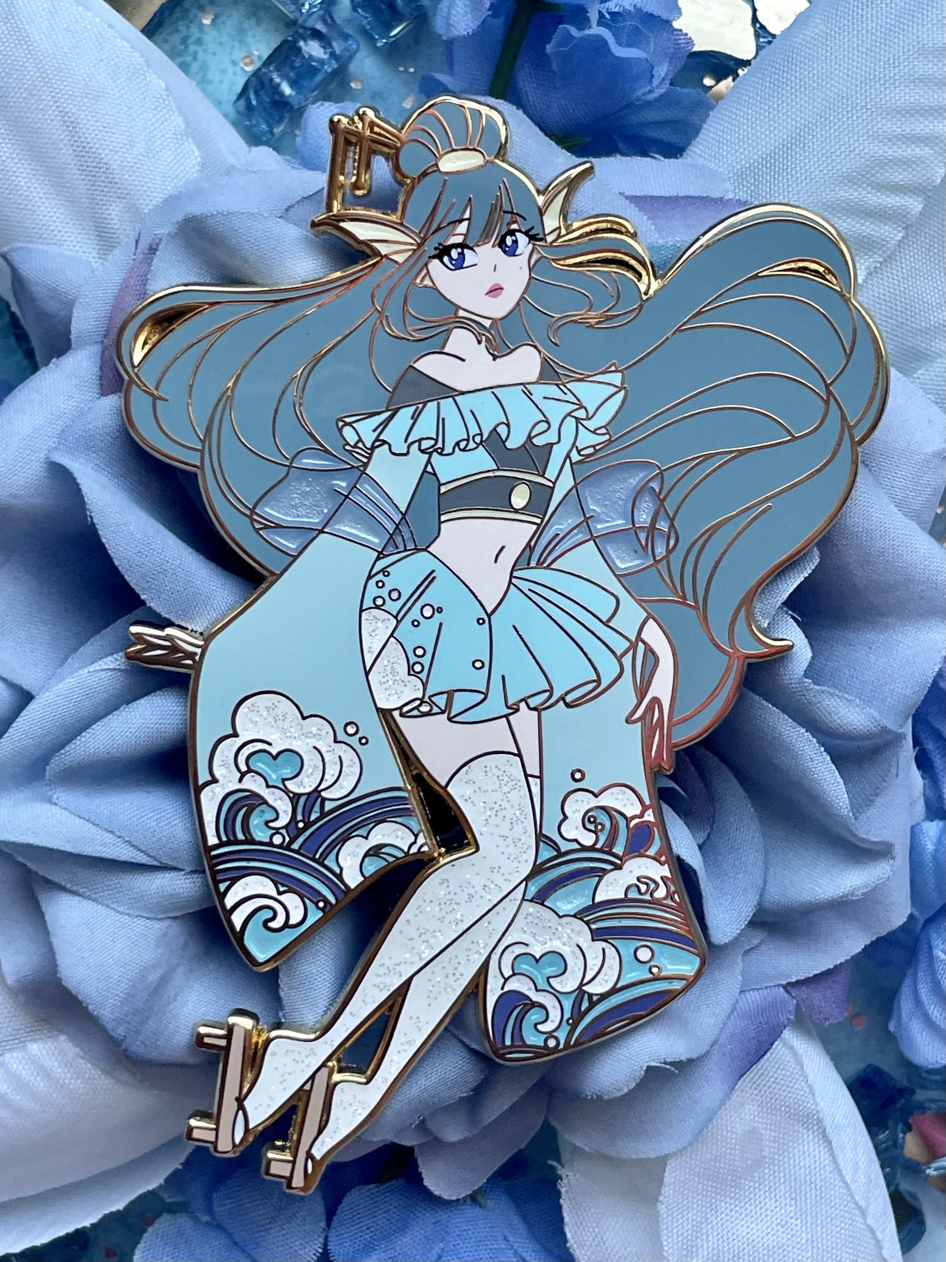 3.5" with glitter tights, pearlescent shawl, and a mixture of glitter and pearlescent waves in her sleeves.